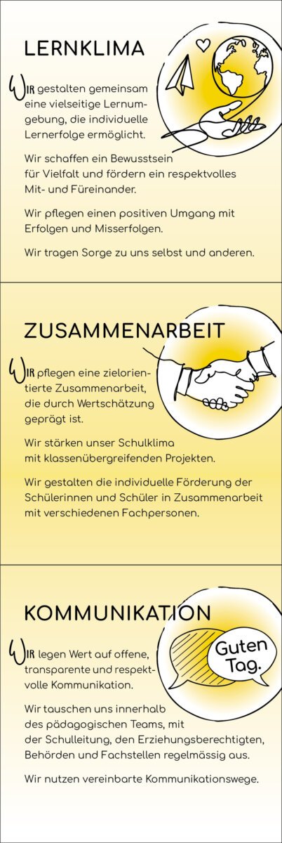 Die Spezielle Förderung unterstützt Kinder mit besonderem Förderbedarf. Ist ein Bedarf angezeigt, wird mit den Eltern der Förderstatus Ihres Kindes vereinbart, damit gezielte Ressourcen gesprochen werden können. Das pädagogische Team plant gemeinsam geeignete Lernsettings (Einzelunterricht, Kleingruppen, Stufengruppen oder Teamteaching im Klassenverband) von denen möglichst alle Kinder der Klasse profitieren können.